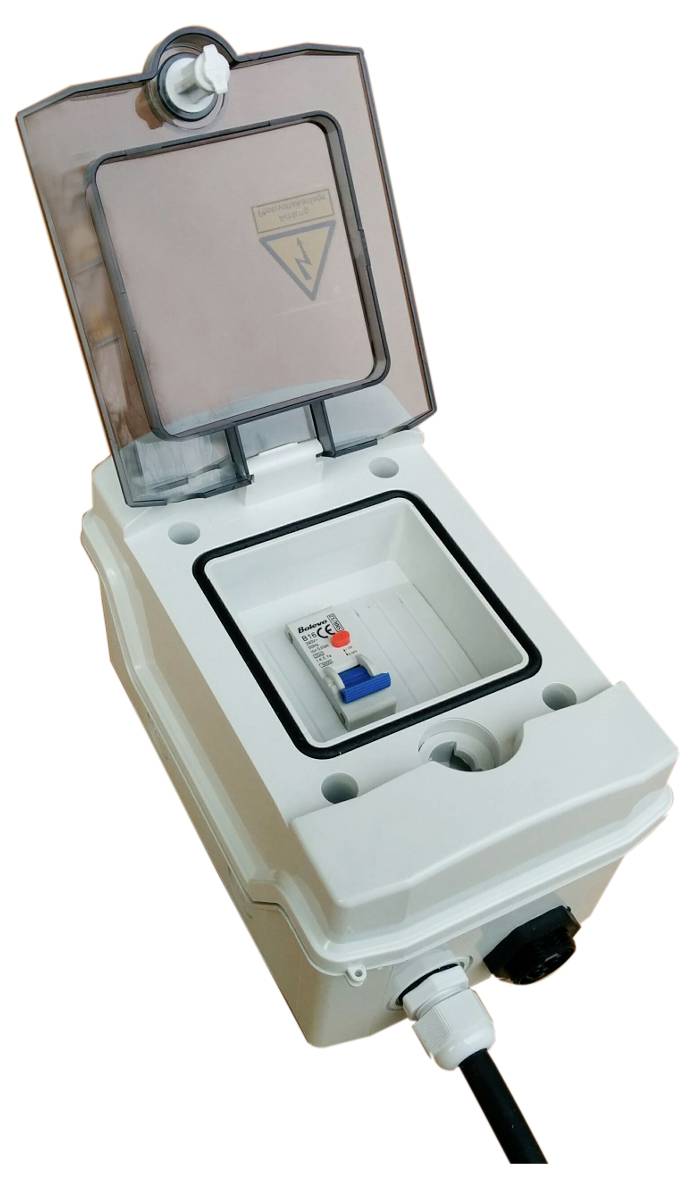 Mit Fiund Leitungsschutzschalter · Mit Wieland RST®-Buchse 20i3 S 3-polig · Stecker verriegelbar · Schutzart IP65 · Einfache Montage · Robust und langlebig · Berührgeschützte Kontakte
