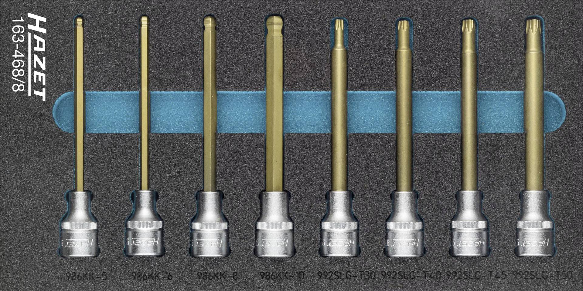 HAZET-Safety-Insert-System (SIS) Oberfläche: TIN beschichtet Gesamtlänge: 342 mm Antrieb: Vierkant hohl 12,5 mm (1/2 Zoll) Abtrieb: Innen-Sechskant Profil, Innen TORX® Profil Breite: 172 mm Ordnungssystem Größe: 1/3 (342 x 172 mm) / SmartCase L HAZET-Safety-Insert-System (SIS) Perfektes Ordnungssystem – alle Werkzeuge rüttelfest eingebettet Schnelle, integrierte Vollständigkeits-Prüfung – fehlendes Werkzeug wird sofort bemerkt Unendliche Kombinationsmöglichkeiten Passend für alle HAZET-Werkstattwagen Assistent mit Schubfächern Für die Werkstattwagen Assistent 173, 179 (XL-XXL) und 180 empfehlen wir zusätzlich Weichschaum-Einlagen 163-522x40 bzw. 163-522x50 Anzahl Werkzeuge: 8