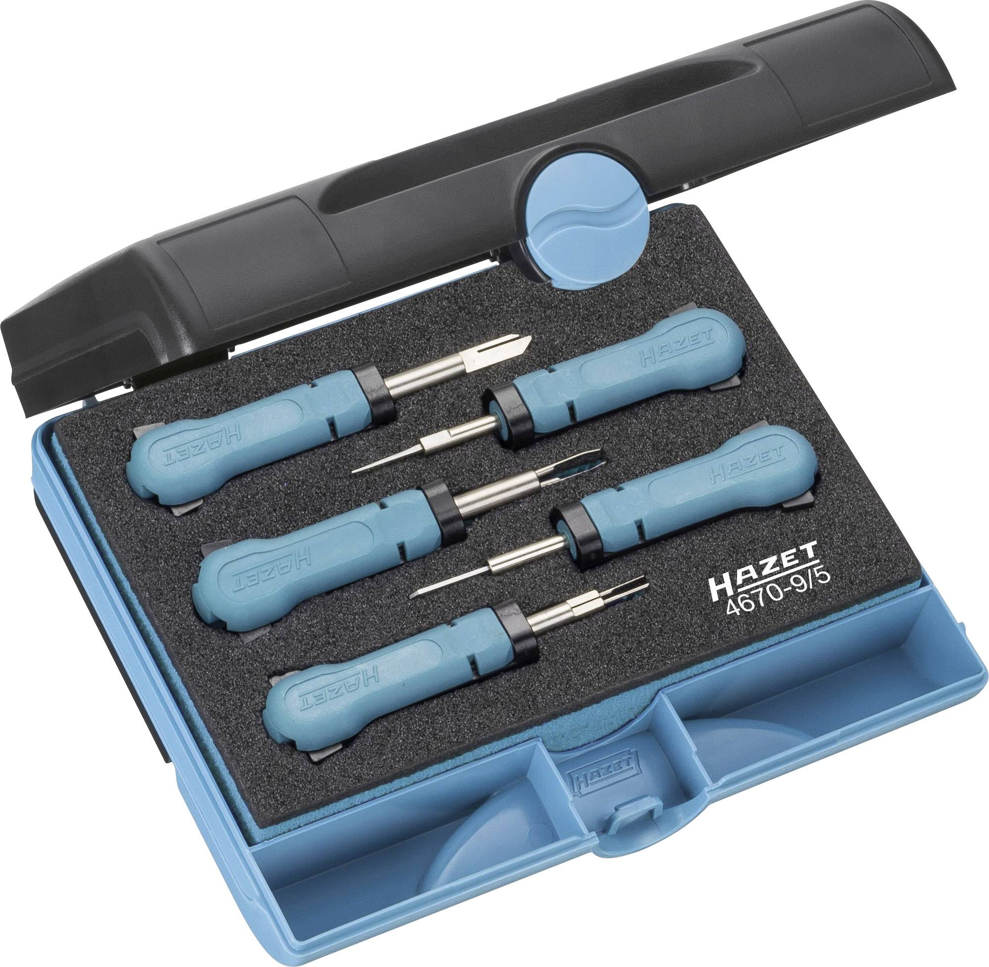 Anwendung: Für das beschädigungsfreie Entriegeln von Flachssteckkontakten z.B. Sekundärverriegelung, Gehäuseverriegelung sowie Flachfederkontakte. Gewährleistet beschädigungsfreies Entriegeln der gängigsten Nkw-Kontakte. Professionell in der Anwendung, einfach in der Handhabung und sicher im Gebrauch. Erstausrüster-Qualität – Made in Germany. Störungen durch Fehlverbindungen lassen sich schnell, mühelos und professionell beseitigen. Universelle Anwendung im Bereich der Kfz-Elektrik. Mit ausziehbarem Schieber zum Schutz der Klingen und zur Vermeidung von Verletzungen. SmartCase (1/9) 165-S Safety-Insert-System, 2-Komponenten-Weichschaum-Einlage. Einlage auch passend für HAZET-Assistent Made In Germany Ergänzungs-Satz für Lkw/Nkw Gesamtlänge: 185 mm Höhe: 52 mm Breite: 153 mm Anzahl Werkzeuge: 5.