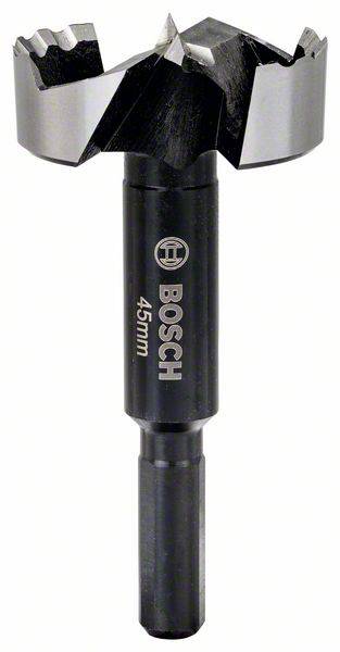 Der Forstnerbohrer besitzt eine hervorragende Lebensdauer beim Bohren von Präzisionslöchern. Das zahnförmige Design sorgt für weniger Reibung und Hitze, woraus sich eine höhere Haltbarkeit ergibt. Die kurze Zentrierspitze des Präzisionsbohrers hat zwei Hauptschnittkanten und eine Peripherschnittkante (zahnförmig) für exakte Ergebnisse. Durch die großen spänefreien Zonen, die einen optimierten Späneabtransport ermöglichen, wird die Schnellbohrpräzision des Bohrers weiter unterstützt. Er ermöglicht ein glattes, splitterfreies Bohren von Blindlöchern sowie das Bohren an Kanten und Schrägen, z. B. für die Befestigung von Scharnieren, das Dübeln oder Entfernen von Astlöchern. Für das Bohren in Weich- oder Hartholz, Furnierholz und nicht laminierte Spanplatte. Er ist für alle Bohrer (Bohrschrauber, Standbohrmaschinen) mit 10-mm-Spannfutter geeignet. Der 3-seitige Schaft des Forstnerbohrers verhindert ein Durchdrehen im Spannfutter. Er ist gemäß DIN 7483G hergestellt, mit einer Schneidenhärte von mindestens 50 HRC. Durchmesser (D) mm: 45,00, Gesamtlänge (L2) mm: 90, Schaftdurchmesser (d) mm: 10