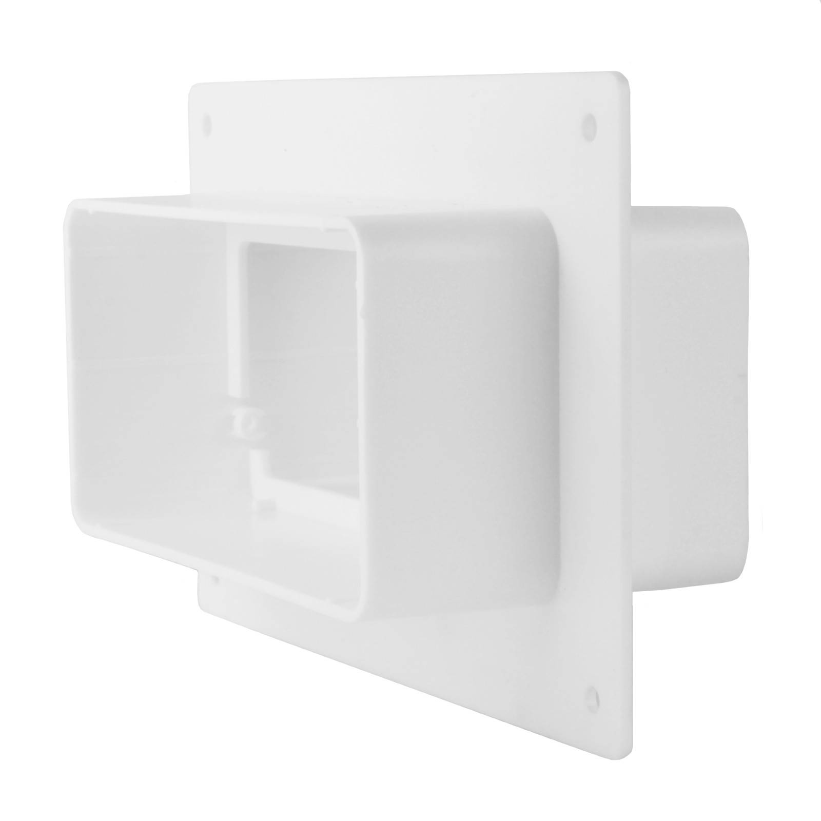 Der Wandflansch wird an der Wand befestigt, um ein Lüftungskanal durch eine Wand in einen anderen Raum zu führen (Mauerdurchführung). Durch die Befestigung an der Wand wird das ganze Lüftungssystem stabilisiert. Gleichzeitig dient der Wandflach als Verbinder für zwei Flachkanäle 55 x 110 mm. So ist es nicht nötig den Flachkanal durch die Wand zu führen, sondern es wird jeweils ein Kanal aus beiden Räumen an den Wandflansch angeschlossen. Der Verbinder ist mit oder ohne Rückstauklappe erhältlich. Vorteile: - hitzebeständig bis 60°C - Verbinder und Wandflansch in einem - einfache Montage - mit oder ohne Rückstauklappe