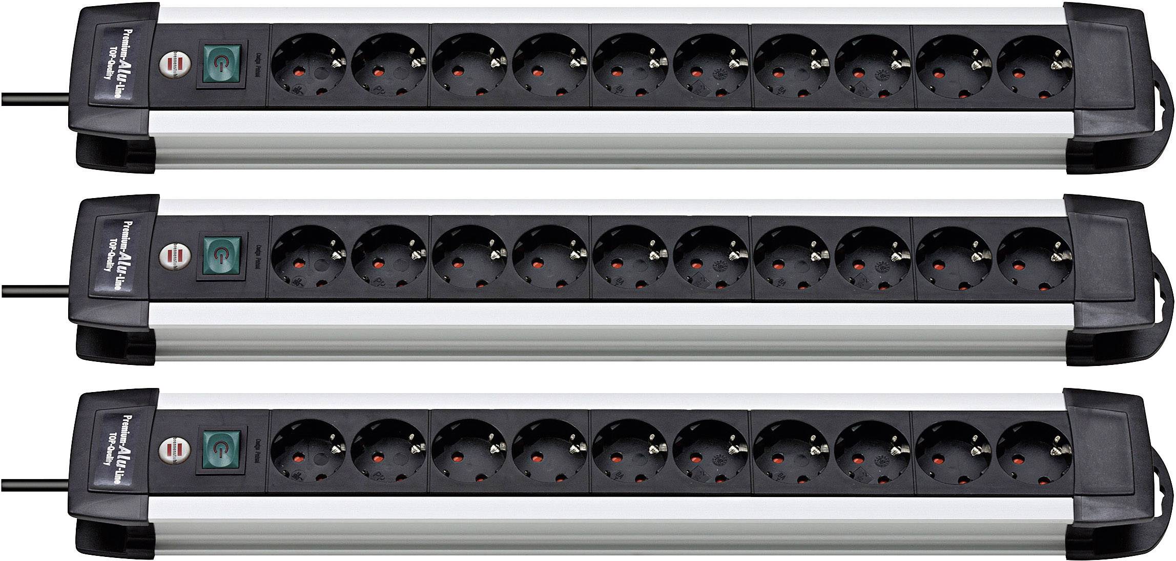 Brennenstuhl 1391000010-3 Steckdosenleiste mit Schalter Schwarz, Aluminium Schutzkontakt 3St.