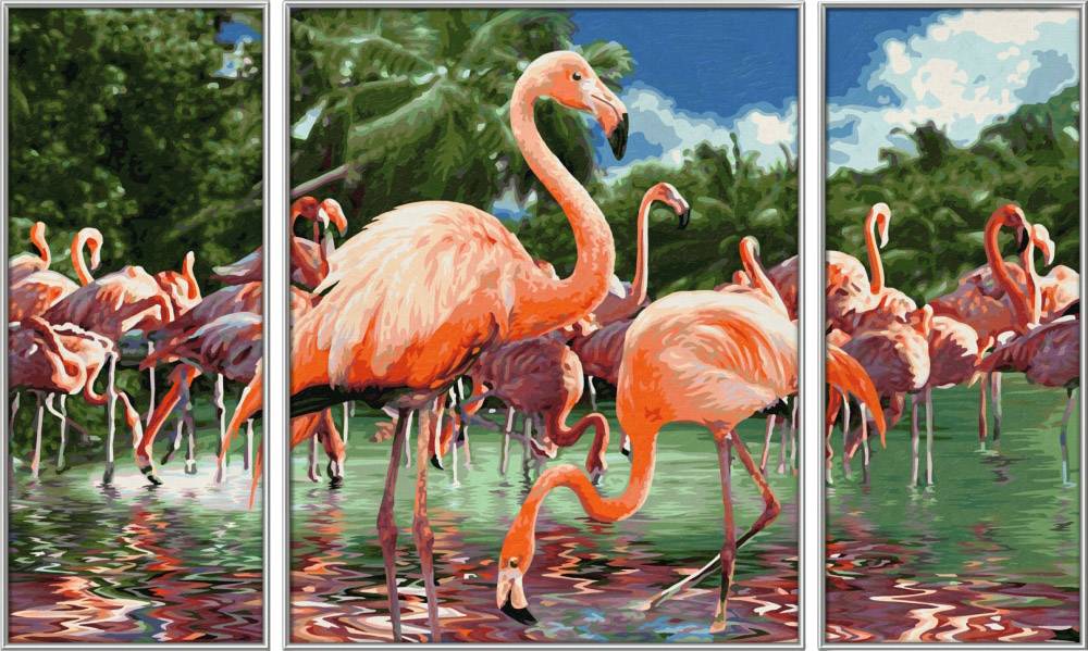 Schipper, 609260782, MNZ Flamingos Triptychon 50x80cm, malen nach zahlen, malen, zahlen, lernen, zeichnen