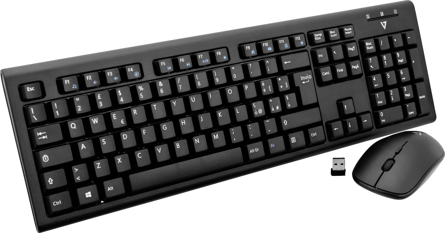 V7 Videoseven CKW200IT Funk Tastatur, Maus-Set Spritzwassergeschützt Italienisch, QWERTY Schwarz