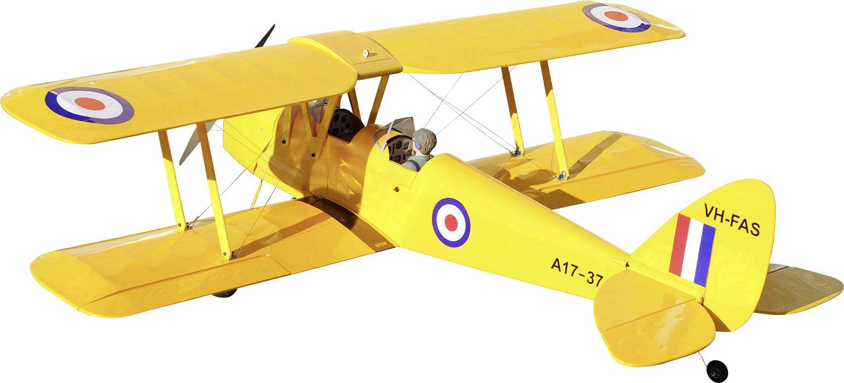 Die de Havilland D.H.82 Tiger Moth ist ein einmotoriges Doppeldecker-Schulflugzeug, das 1931 seinen Erstflug hatte. Entworfen hat dieses Flugzeug Geoffrey de Havilland. Dabei wurde die Tiger Moth als Schulflugzeug bei der britischen Royal Air Force eingesetzt. Gegen Ende der Einsatzzeit um das Jahr 1950 wurden viele D.H.82 zivil genutzt. Viele davon fliegen noch heute auf Veteranentreffen. Das Modell wurde dem Original liebevoll nachempfunden und weist sehr gutmütige Flugeigenschaften auf. Unsere Tiger Moth wurde von Grund auf für Elektroantriebe entwickelt. Das große, nach oben abnehmbare Cockpit erlaubt einfache Akkuwechsel und Wartungsarbeiten. Aufgrund der kompakten Größe kann das Modell zusammengebaut in den meisten PKWs transportiert werden, ohne die Tragflächen abzubauen.