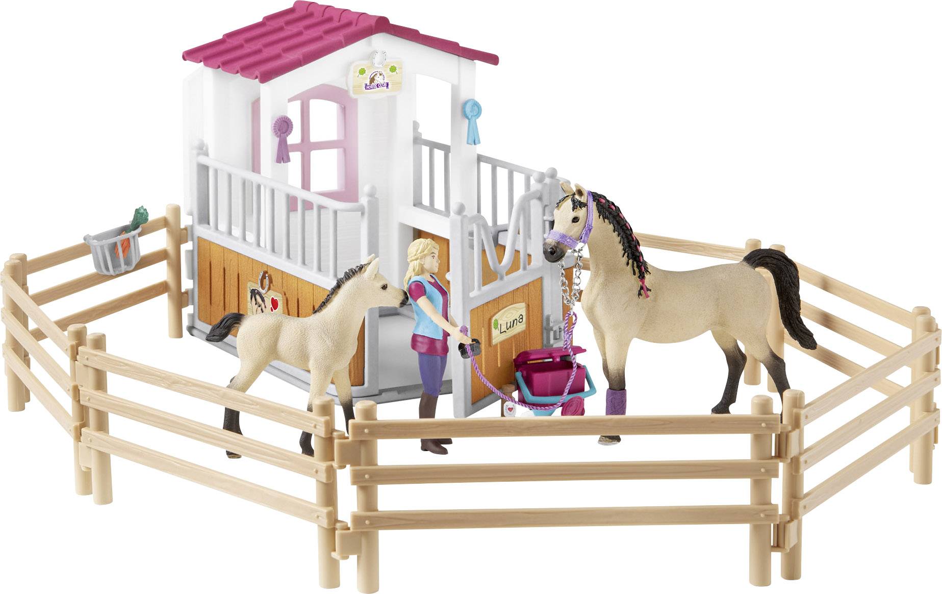 Schleich, 42369, Horse Club Pferdebox mit Arabern und Pferdepflegerin, A0-20