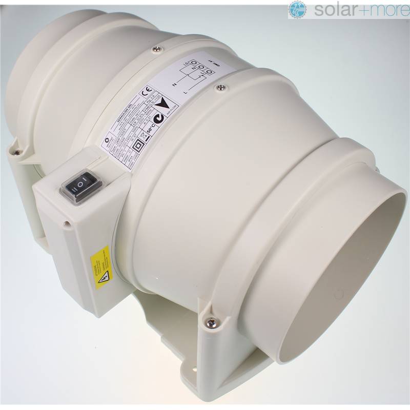 QMF - Halbradialer Rohrventilator mit zuschaltbarer Nachlaufzeit zweistufiger betrieb über Schalter Der QMF ist ein kompakter halbradialer Rohrventilator für den Luftaustausch in Wohn und Gewerbeobjekten Für lange Rohrleitungen geeignet für horizontale oder vertikalen Montage. Achtung für Nachlaufzeit ist eine Dauerspannung erforderlich falls nicht gewünscht muss Bauseits eine Brücke gesetzt werden im Gerät. TOP Features einfache Installation mit nachschaltbaren Nachlaufzeit preisgünstig by solar+more Kugelgelagerter Motor Leiser betrieb dank Winglet Technische Daten Hochwertiges Technopolymer , Stoßfest und UV-beständig Aerodynamischer Hochleistungs-Laufrad für leisen betrieb Außenklemmkasten für einfachen elektrischen Anschluss Komplett mit Montage-Konsole, der Ein- und Ausbau der Gerätes ohne Ausbau des Lüftungskanals möglich Mit Stufenschalter AC zweistufiger Motor mit Überlastungsschutz Motor Kugelgelagert für lange Lebensdauer (30.000h) Für kaltes klima geeignet Doppelisoliert ohne Erdungsanschluss Für Dauer und Wechselbetrieb geeignet Schutzart IP44 Versorgungsspannung 230V/50Hz Timer 1-30 min Art-Nr. Leistung m³/h Leistungsaufnahme W max Schalldruck db(A) bei 3m QMF100 234/205 32/32 45/44 QMF125 342/295 34/33 44/43 QMF150 586/442 69/58 55/50 QMF200 928/800 120/145 50/45