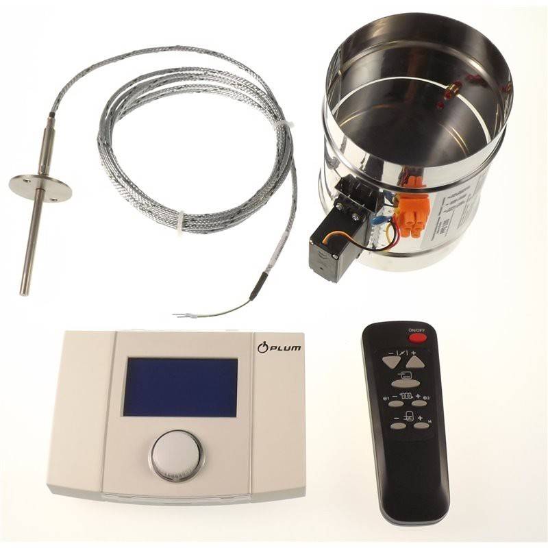 Der EcoKOM 260 Classic Verbrennungsoptimierer für Wassergeführte Kaminöfen inkl. Fernbedienung und Drosselklappe mit Kontakt für Türkontaktschalter ecoKom 260 Classic optimiert den Verbrennungsprozess in wassergeführten Kaminöfen. Die Elektronische Abbrand Regelung Regelt über ein Drosselklappe die an die primäre Luftversorgung des Wassergeführten Kaminofens angeschlossen wird. Die Drosselklappe 100/125/150 Reguliert anhand der Kessel und Abgastemperatur die Luftzufuhr des Kaminofens. Durch diese Kontrollierten Abbrand erreichen Sie mit dem Kaminofen einen langen und effizienten Abbrand. Durch dieses ständige Messen, vergleichen und anpassen erhalten Sie eine optimale Verbrennung welches auch den Verbrauch reduziert. Der Regler Arbeitet mit einem PID Algorithmus: P Regler = Auswertung der Soll und Ist Temperatur I Regler = Erkennung von Langzeitänderungen und Regulierung D Regler = Ausgleich schneller Temperaturänderungen Die Kombination der Eigenschaften der einzelnen Reglern ergibt einen sehr genauen Regler der Temperatur Änderungen schnell und genau abfangen und korrigieren kann. Funktionsübersicht: vollautomatische Steuerung nach Angabe der Kessel und Puffertemperatur stufenlose Luftklappensteuerung manuelle Einstellung der Luftklappe möglich automatisches schließen der Drosselklappe bei Stromausfall spezielles anfach Programm flammen Löschung durch kontrollierte Sauerstoff Abschottung Benachrichtigung bei Brennstoffmangel bei Übertemp. wird die Max. Puffertemp. ignoriert (Kühlung) Funktion ohne Speicher möglich Parallelbetrieb oder Vorrangschaltung zu primären Wärmeerzeuger möglich Anschluss eines Raumthermostaten möglich Antistopp Funktion der Pumpe gegen festsitzen integrierter Speicher für 10 Tage smart Alarm zur Erkennung von Fehlfunktionen turn and push Steuerung LCD Grafikdisplay mit Visualisierung Ansteuerung weiterer Wärmeerzeuger auf Anfrage mit Türkontaktschalter Top Features: Modernes Design TOUCH & PLAY Steuerungssystem Fernbedienung Optimierung des Verbrennungsprozesses Reduzierung des Brennstoffverbrauchs Brennstoffmangel Anzeige preisgünstig by solar-more Anpassung der Kaminparameter Rotierendes Menü Ansteuerung eines weiteren Wärmeerzeugers Ansteuerung der Puffer Ladepumpe Lieferumfang: ecoKOM 260 Abgassensor Kaminsensor Speicher/Puffersensor Drosselklappe Fernbedienung Anschlussmaterial