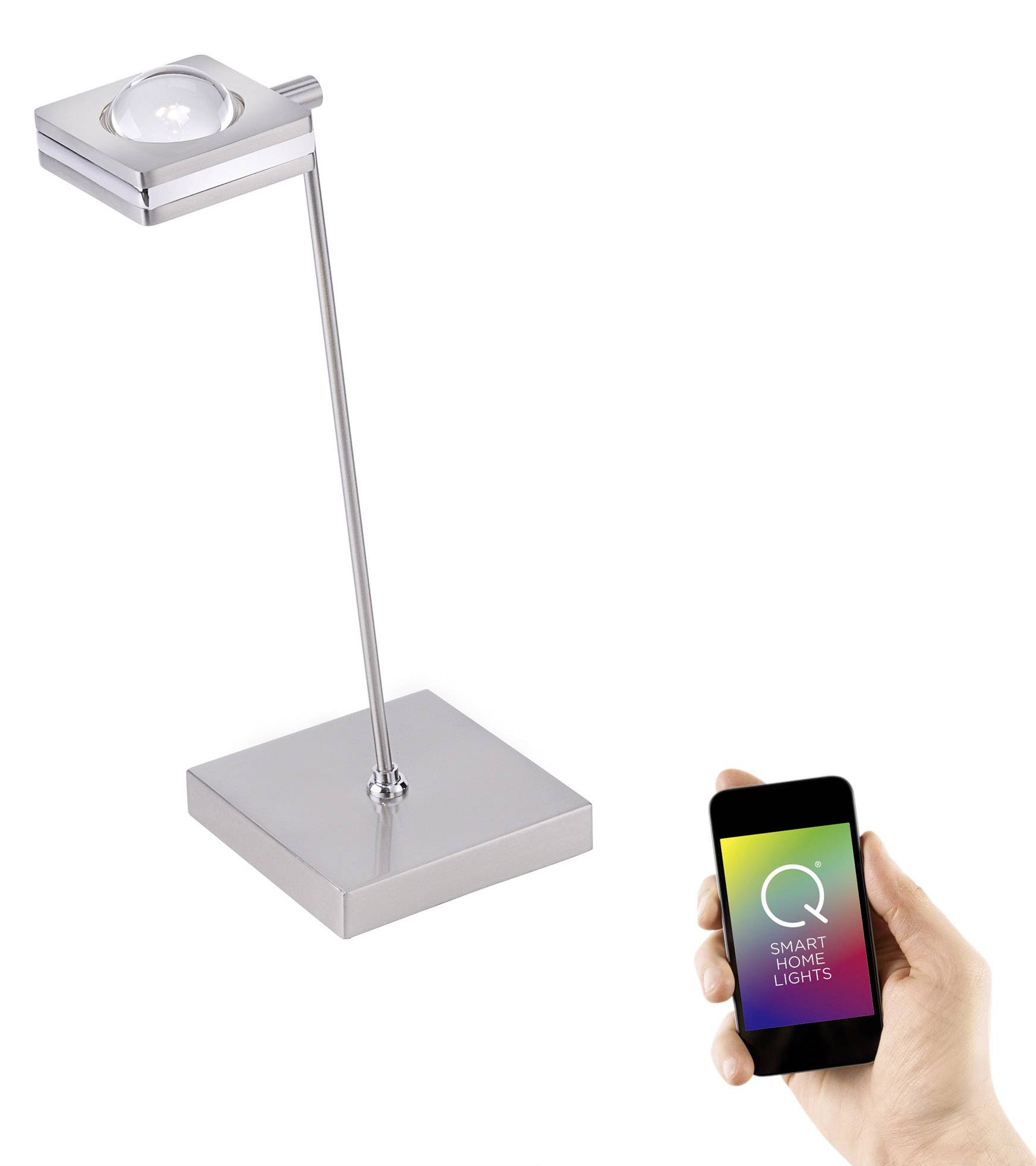 Alle Q®-Leuchten können außerdem in vorhandene Smart Home Systeme integriert werden, die auf dem ZigBee-Funkstandard basieren. Mit der Anbindung an eine ZigBee-kompatible Bridge eines Drittanbieters (z.B. UBISYS G1 etc.) können die Leuchten dann per Smartphone, Tablet oder PC über eine dazugehörige App gesteuert werden. Der Spot und der Arm der Leuchte sind durch Kugelgelenke beweglich und können so nach Belieben verstellt werden. Über einen Schnurschalter können Sie die Leuchte bequem an- und ausschalten.