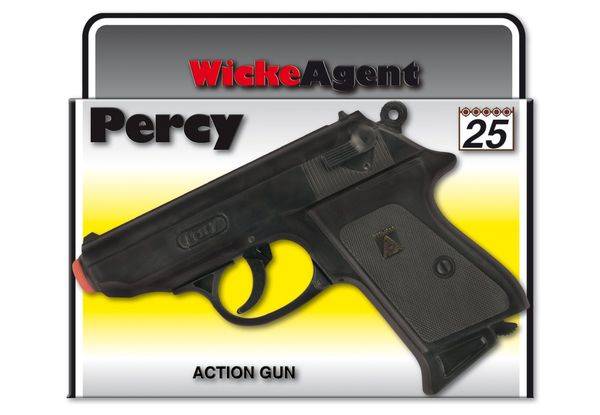 Percy, 25-Schuß-Schnellfeuer-Pistole, schwarz, aus hochwertigem Kunststoff, Länge: ca. 16cm.