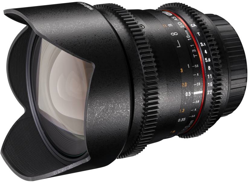 Mit dem walimex pro 10/3,1 Video DSLR sind Sie sowohl für Video als auch für Foto ausgestattet, ohne dabei Ihre Kamera zeitaufwändig umrüsten zu müssen. Die Blende lässt sich stufenlos einstellen, wodurch die übergänge der Belichtung minimiert werden. Der Blendenring und Fokusring sind mit einem Zahnkranz versehen und somit für die Verwendung mit Schärfeziehvorrichtungen (Follow Focus-Systemen) optimiert.