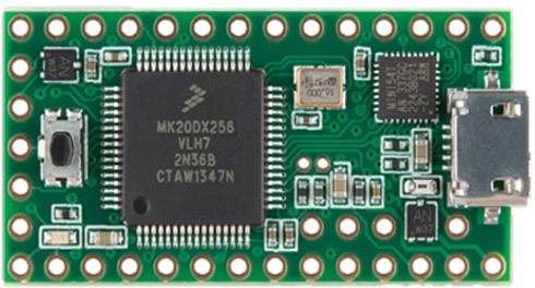 Das Teensy 3.2 Entwicklungsboard verfügt über einen 32 Bit ARM Cortex Mikroprozessor, mit dem auch rechenintensive Anwendungen möglich sind und wird mit einem Bootloader im Flash-RAM geliefert. Sie können ihn direkt über den USB-Anschluss programmieren. Es ist kein externes Programmiergerät nötig.