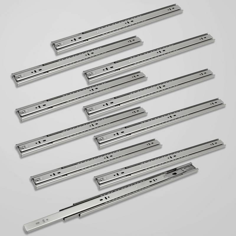 Die dreiteiligen Schubladenauszüge können vollständig ausgezogen werden, leise und reibunglos, das dicke Material ist robust und langlebig, die Schubladenauszüge verfügen über Selbsteinzug und Dämpfung, um Einklemmen zu verhindern, geeignet für Schlafzimmern, Kinderzimmern, Wohnzimmern, Küchen, Badezimmern und Büromöbeln , ideal für Schubladeninstallationen.