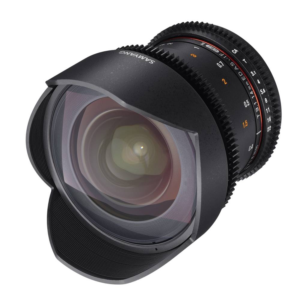 Dieses Weitwinkelobjektiv von SAMYANG wurde für die Ansprüche von Video- und Fotografen entwickelt. Die Blende lässt sich stufenlos von 3,1 bis 22 einstellen, die Schärfeneinstellung erfolgt weich und leichtgängig. So ist ein weiches Nachführen der Schärfe bei Videoaufnahmen möglich. Blendenring und Fokusring sind mit einem Zahnkranz versehen und somit für die Verwendung mit Schärfezieheinrichtungen (Follow Focus-Systemen) optimiert. Zur besseren Lesbarkeit sind die Entfernungs- und Blendenskala seitlich angeordnet.