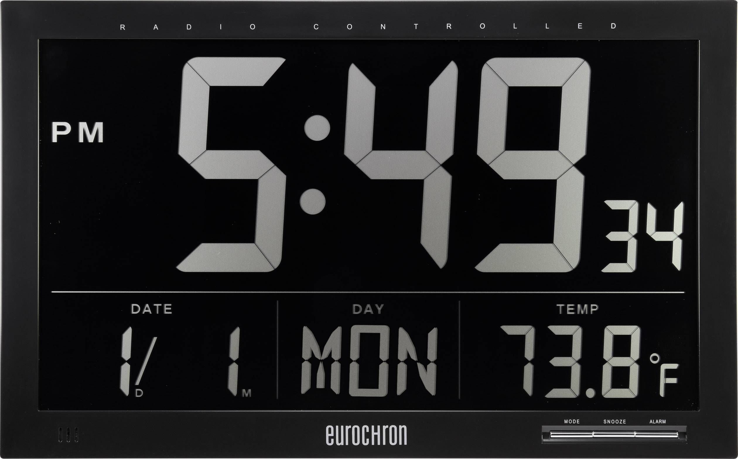 Bei dieser Jumbo Funk-Wanduhr haben Sie sicher alle wichtigen Daten im Blick.