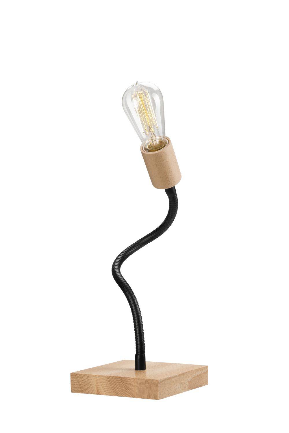 Elemente aus Holz verleihen der Tischlampe ein wohnliches Design, das sich sowohl ins Wohnzimmer als auch ins Jugendzimmer und Kinderzimmer einfügt