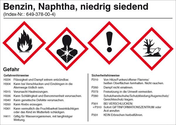 SafetyMarking 21.B2042 Hinweisschild Gefahrstoffetikett Benzin Folie selbstklebend (B x H) 148mm x 105mm 1St.