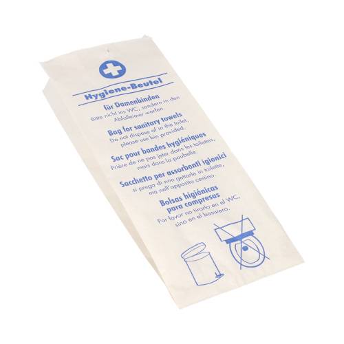 200 Hygienebeutel 28 cm x 11 cm x 5,5 cm weiss "bedruckt". Material: Kraftpapier. Farbe: weiss