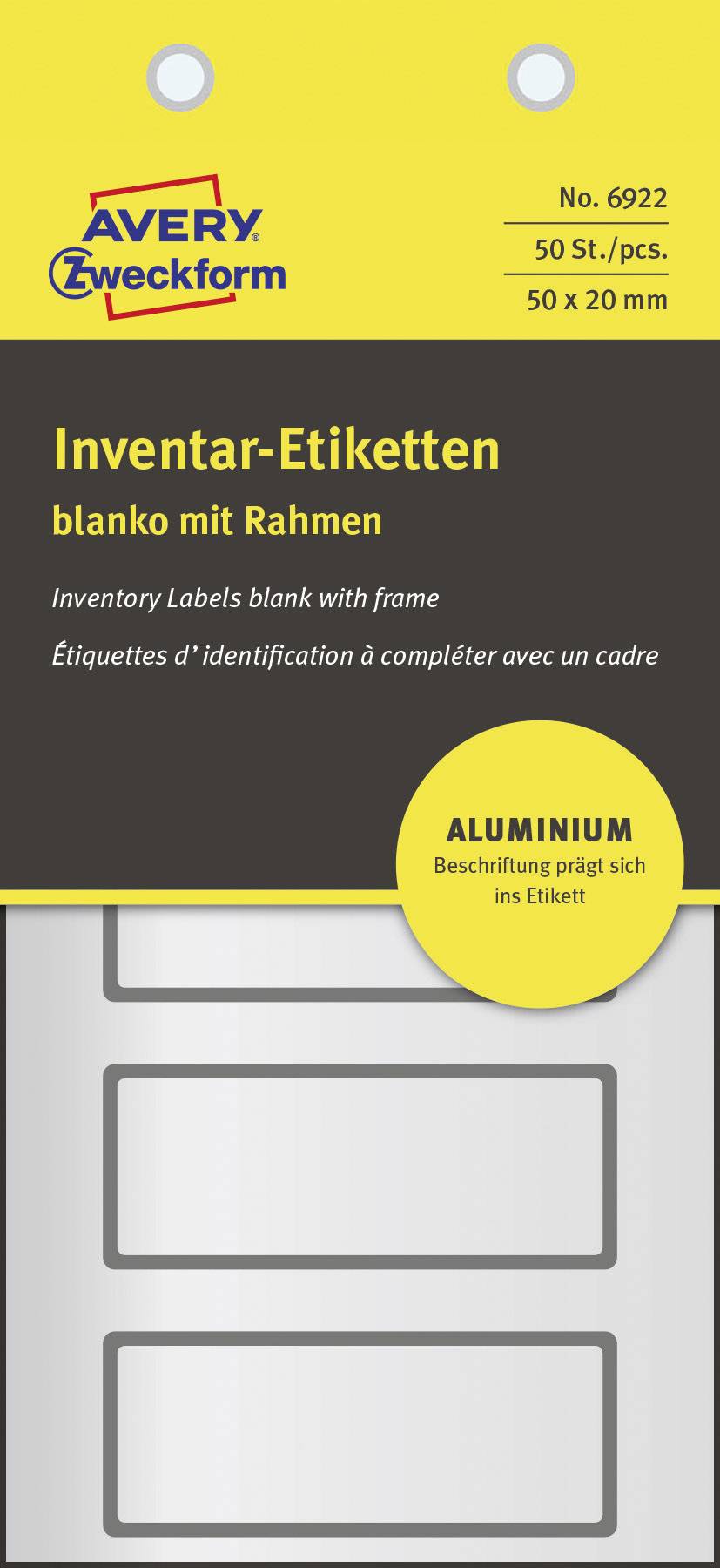 Avery-Zweckform 6922 Etiketten 50 x 20 mm Aluminium-Folie Silber, Schwarz 50 St. Permanent Inventar-Etiketten