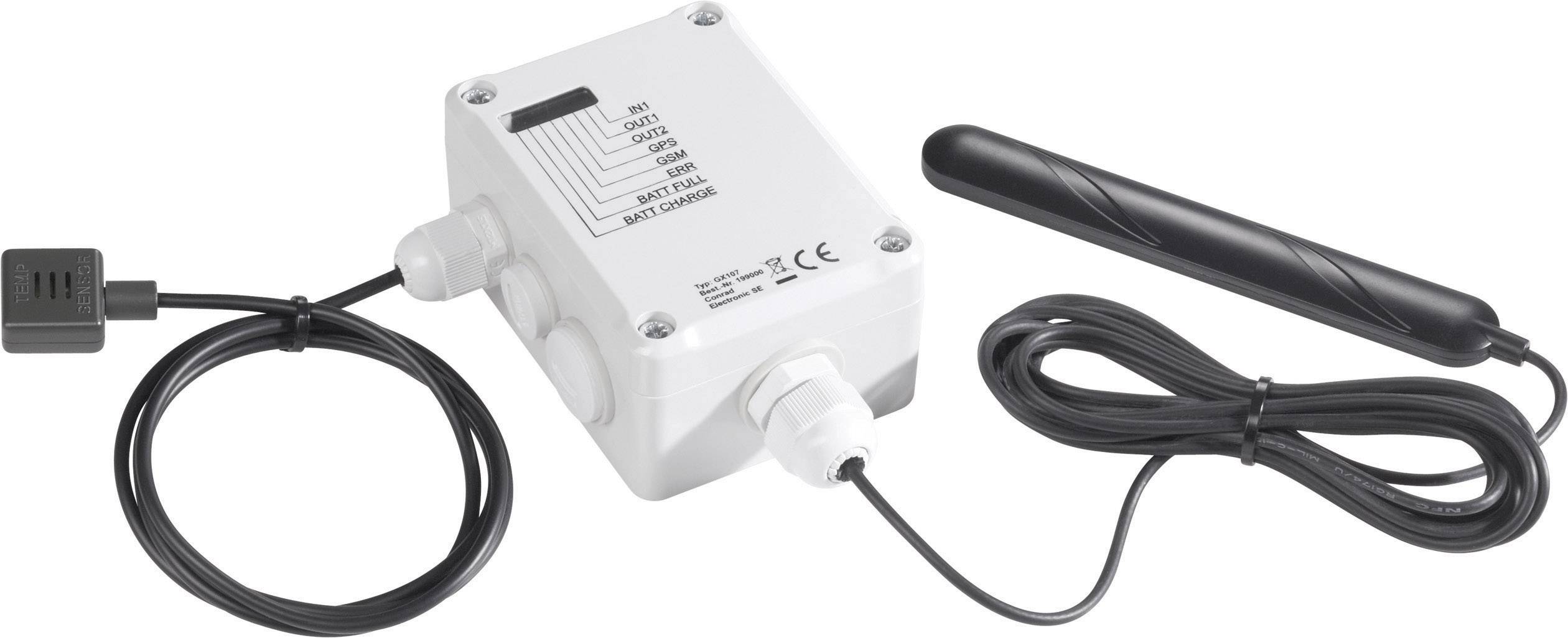 GSM-Modul GX107 · Eingebauter 1100 mAh LiPo-Akku · Integrierte GSM-Antenne · Kabeldurchführungen und Verschlussstopfen, IP66 konform · Bedienungsanleitung.