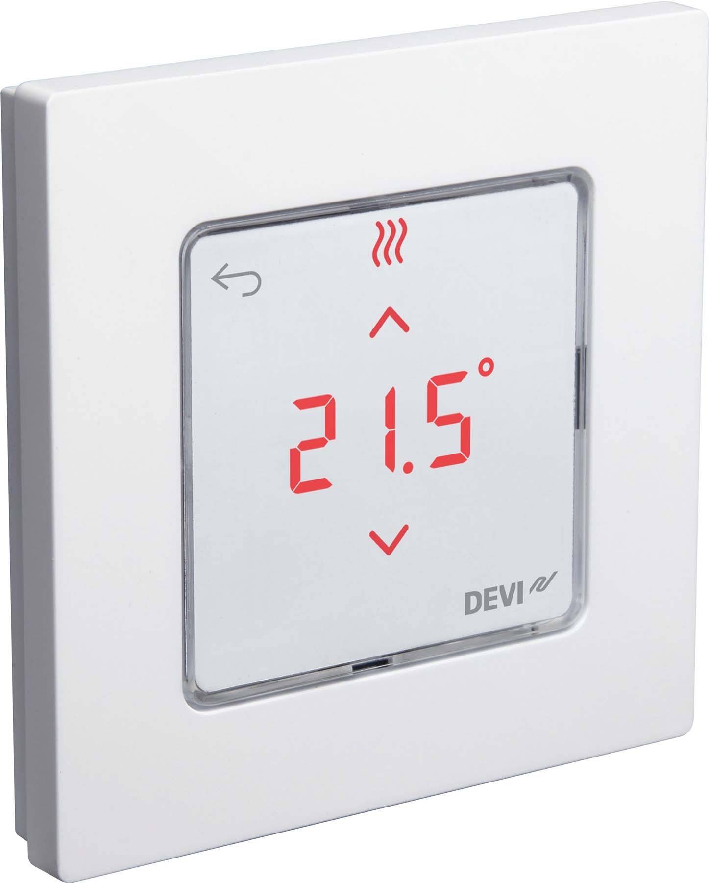 Raumtehrmostat für Warmwasser-Heizung mit Touch Display. Anzeige im Display erlischt nach 10 sek automatisch. Temperaturbereich: 5 bis 35° C, Frostschutzeinstellung = 5° C. Umgebungstemperatur, Lagerung: -20 bis 60° C. Umgebungstemperatur, Betrieb: 0 bis + 40° C. Regler, Typ: Pulsweiten Modulation. Max. Dauerlast (Ausgang): < 50 mA/10 W (= 5 Danfoss TWA-Stellantriebe). Max. Einschaltstrom (Stellantrieb): 3 A = 100 ms. Leistungsaufnahme: 0,2 W. Spannungsversorgung (ohne Stellantriebe): 220 bis 240 V, 50/60 Hz. Raumfühler 47 kO, NTC. Gehäusematerial Weiße Teile: PC ASA. Graue Teile: PC, 10 % Glas. IP und Schutzart IP: 21 Schutzklasse: II. Zulassung: CE, RohS, WEEE. Farbe Weiß RAL9010/Dunkelgrau RAL7024. Maße: 80 x 80 x 11 mm. Nicht für elektrische Fußbodenheizung geeignet. Passt in viele der gängigsten Schalterrahmen.