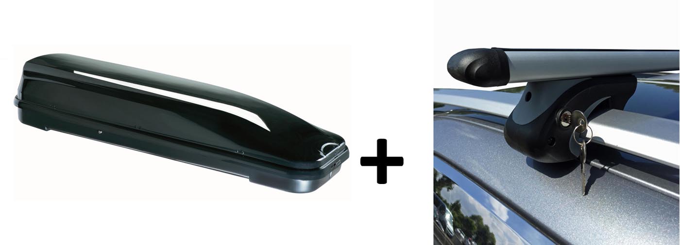 Praktische Relingträger-Skibox-Kombination. Dank einfacher Handhabung sind der Dachträger und die Skibox mit wenigen Handgriffen montiert