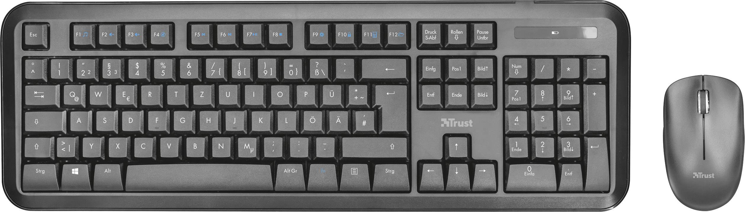 Trust Nova Funk Tastatur, Maus-Set Spritzwassergeschützt Deutsch, QWERTZ, Windows® Schwarz