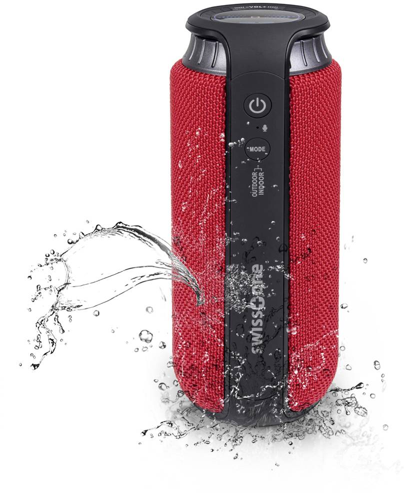 Mit Freisprechfunktion · X-Bass Technologie · Spritzwassergeschützt (IPX4) · LED Indikatoren (für Pairing Modus, aktive Bluetooth Verbindung, niedriger Akkustand und Ladevorgang) · 2 x 12W Lautsprecher · Übertragungsreichweite bis zu 10 Meter · Betriebszeit bis zu 8 Stunden · Schnittstellen: Micro USB · 3,5 mm AUX In · Li-Ion Akku mit 4.000 mAh.