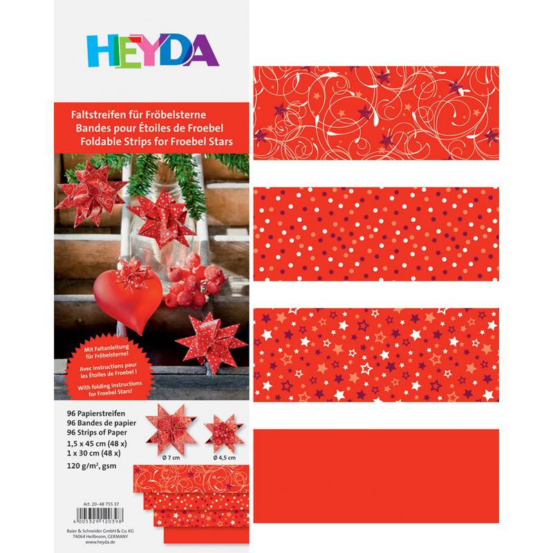 HEYDA Faltpapierstreifen für Mini-Fröbelsterne, rot für 24 Mini-Fröbelsterne, 120 g/qm, beidseitig bedruckt,