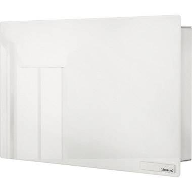 Ab sofort übernimmt der Schlüsselkasten VELIO den Schlüsseldienst. Die Fronttür ist eine Glasscheibe, die weiß hinterdruckt und mit einer magnetischen Edelstahlfläche hinterlegt wurde. Das heißt, optisch haben Sie eine sehr glänzende, weiße Glasoberfläche, praktisch auch noch eine Magnettafel. So können Sie mit den mitgelieferten extra starken Neodym Magneten Karten und Notizen anheften. Kleine und große Schlüsselbunde verschwinden im Inneren des Kastens. Die mit Gummi überzogenen Haken bieten Ihnen die Möglichkeit, auch größere Autoschlüssel unterzubringen. Die Glastür wird komfortabel mit einem innen angebrachten Magneten verschlossen. Eine kleine, mattierte Edelstahlplatte mit blomus Logo ist auf der Front angebracht. Diese ist nicht nur ein schönes Detail, sondern zeigt Ihnen auch, an welcher Seite der Schlüsselkasten zu öffnen ist.