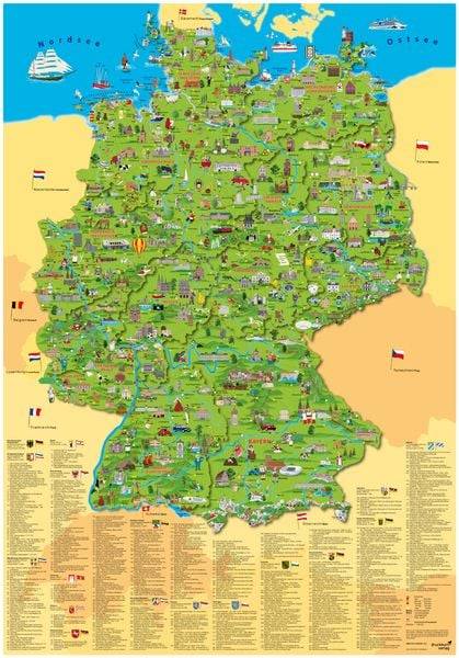 Informatives, unterhaltsames und dekoratives Poster: Alles, was das Land der Dichter und Denker, der abwechslungsreichen Landschaft, der Entdecker und Pioniere ausmacht. Zeitgeschichte plus Sehenswürdigkeiten, Tipps für Freizeit, Natur- und Tierwelt, Skurriles und Witziges, neben Wissenswertem. Bundesländer mit ihren Hauptstädten, Städte, Berge, Flüsse, alles übersichtlich in einer umfangreichen Legende besprochen: So macht Entdecken einfach Spaß! Für die ganze Familie und ideal als Geschenk für alle, die mehr über Deutschland erfahren möchten.
