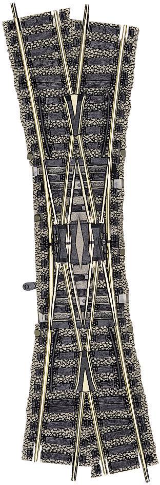 Realistisches Aussehen mit einer übersichtlichen Gleisgeometrie. Da findet sich der Einsteiger schnell zurecht und kann leicht auch größere Modellbahnanlagen aufbauen. Das filigrane, exakt gravierte Schotterbett mit unregelmäßig verlaufenden Außenkanten gibt die Struktur des Schotters hervorragend wieder. Dunkelbraune Holzschwellen lassen die Holzmaserung erkennen. Die Vollprofilschienen bestehen aus einer hochwertigen Neusilber-Legierung mit idealen Stromleiteigenschaften auch auf langen Strecken. Spezielle Klick-Schienenverbinder sorgen für dauernden, festen Halt. Die durchdachte Gleisgeometrie im Rastersystem kennt, abgesehen von sogenannten Diagonal-Gleisen und wenigen Spezialgleisen, nur ganze und halbe gerade und gebogene Gleise. Dank des Vario-Systems kann auf Anschlussgleise, Schaltgleise und dergleichen völlig verzichtet werden, da Anschlussklemmen und Schaltzubehör am Gleis befestigt werden können.