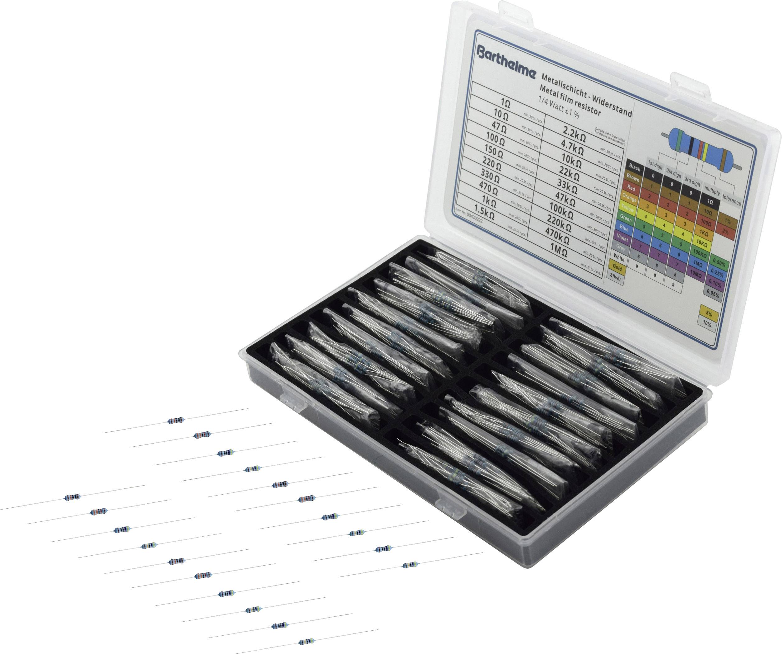 Barthelme 00430333 00430333 Metallschicht-Widerstand Sortiment axial bedrahtet 0207 0.25 W 1 % 400 St.