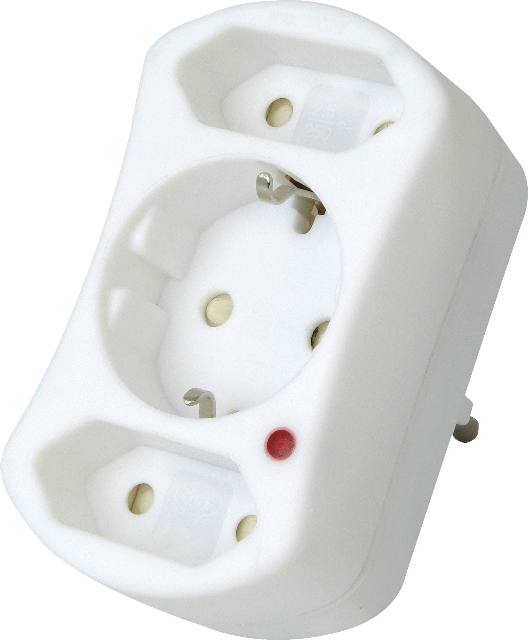 Europa-und Schutzkontakt-Adapter SAFETRONIC mit Geräteschutz- Überspannungsfilter, Anschluss für zwei Europa-und einem Schutzkontakt- Stecker in einer Schutzkontaktsteckdose mit Kontrolllampe, Belastbarkeit max.3600 W, 230 V~, arktis-weiß