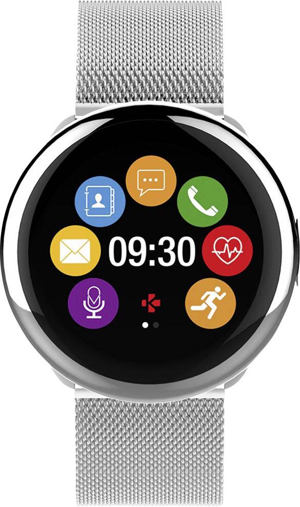 Zeit: Gibt die Uhrzeit an · Anrufe: Annehmen, beenden, ablehnen · Benachrichtigungen: Anzeige von SMS, E-Mails und Social-Media-Aktivität · Herzfrequenz: Misst Ihren Puls · Schrittzähler: Zählt täglich zurückgelegte Schritte · Kalorien: Berechnet die verbrannten Kalorien · Distanz: Zeigt zurückgelegte Distanz an · Schlaf: Überwacht Schlafphasen und Schlafqualität · Ziele: Setzen Sie Ihre Ziele fest · Sprachsteuerung: Benutzen Sie die Smartwatch mit Sprachbefehlen · Verlustsicherungsalarm: Erkennt, wenn Ihr Handy nicht mehr in der Bluetooth-Reichweite ist · Finde mein Telefon: Lokalisieren Sie Ihr Handy auf Knopfdruck · Musik: Spielt die Musik von Ihrem Handy ab · Erinnerungen: Festlegen von Erinnerungen mit Vibrationsalarm · Fotoapparat-Fernbedienung: Fernbedienung von Ihrem Fotoapparat · Wettervorhersage: Überprüfen Sie das Wetter von Ihrem gewünschten Standort.