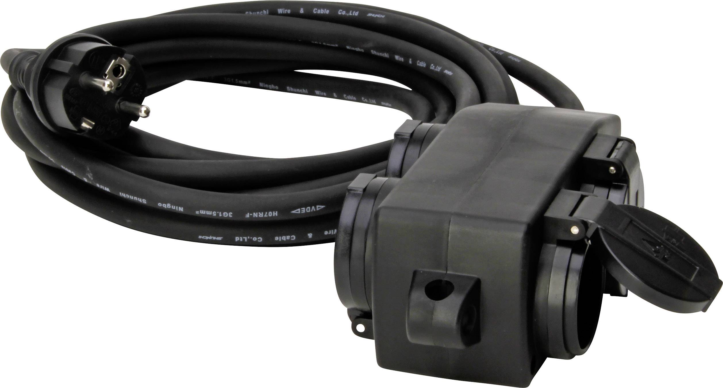 Ideal für die Stromverteilung im Außenbereich. Bestehend aus witterungsbeständigem, bruchfestem Gummi. Ausgestattet mit 4 selbstschließenden Sicherheitsklappdeckeln.