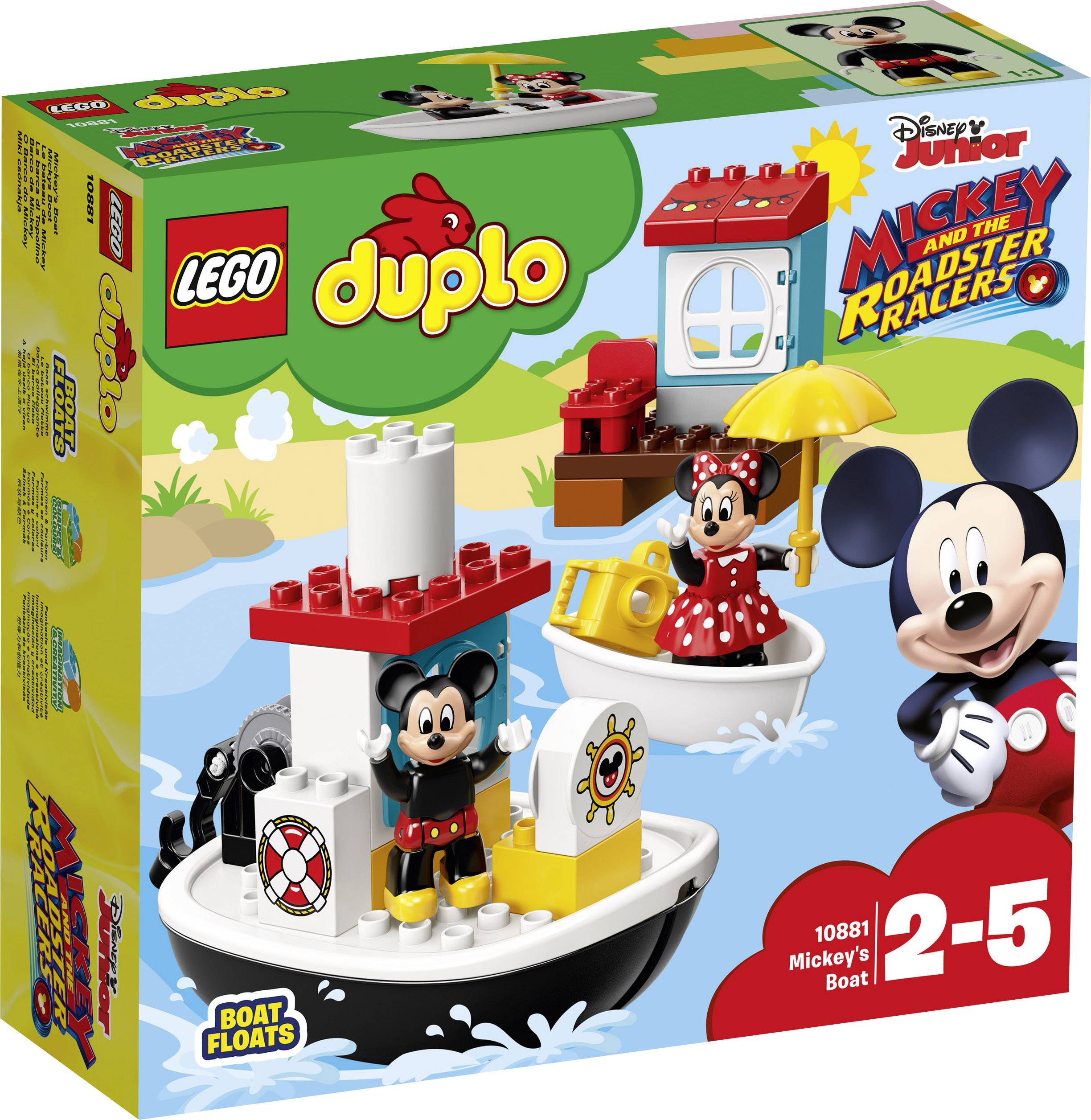 Mit dem LEGO® DUPLO® Set „Mickys Boot“ können kleine Disney-Fans vom Pier ablegen und an einer superlustigen Bootsparade auf dem Wasser teilnehmen. Beim Bauen des Piers und des Boots im klassischen Disney-Stil entwickeln Kinder ihre Feinmotorik weiter. Kinder helfen Micky Maus das Dampfschiff zu steuern und Minnie Maus mit ihrem Sonnenschirm im kleinen Ruderboot ins Schlepptau zu nehmen. Dieses witzige LEGO DUPLO Set ist genau richtig, um dann am Pier weiterzufeiern. Enthält 2 DUPLO Figuren: Micky Maus und Minnie Maus.