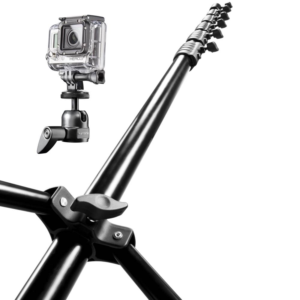 Set mit 6m hohem Stativ und Kugelkopf für eine flexibible Ausrichtung der GoPro am Stativ.