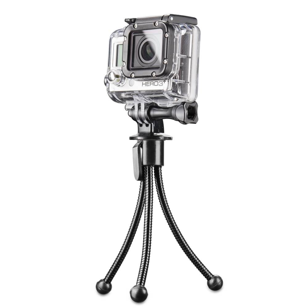 extrem kompaktes Stativ mit flexiblen Stativbeine mit Gummifüßen, optimal zur Smartphone-Halterung.