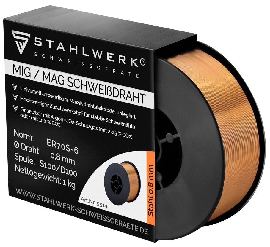1 x STAHLWERK MIG MAG Schweißdraht ER70S-6 SG2 ø 0,8 mm / 1 kg S100/D100 Drahtrolle