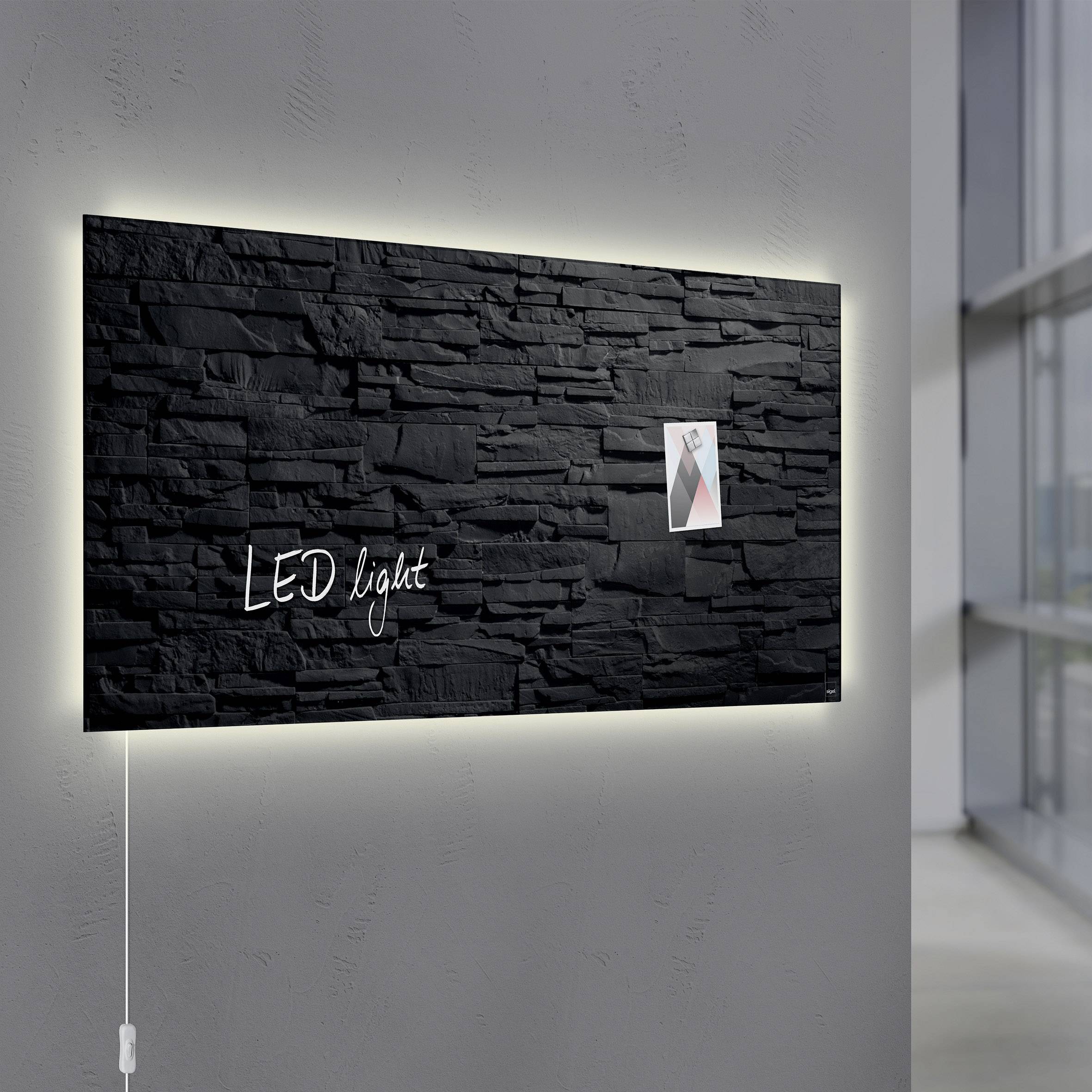 Glas-Magnetboard Artverum LED light - einzigartiges Raum-Objekt im Design Schiefer-Stone mit attraktivem LED-Stimmungslicht