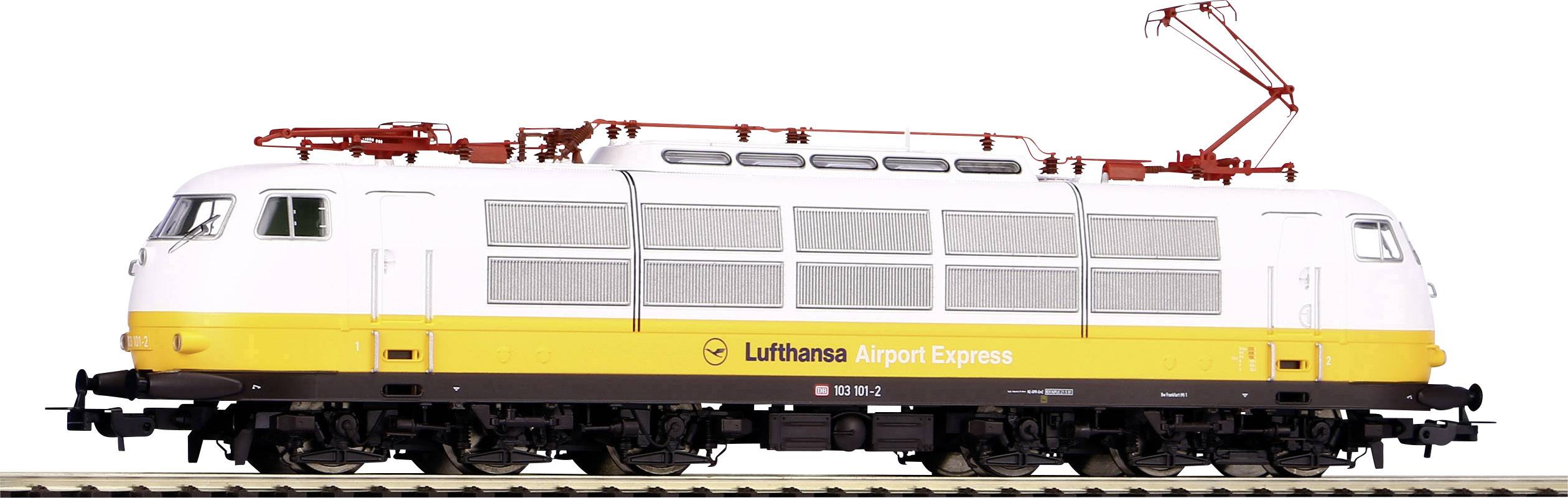 Der mittlerweile legendäre Lufthansa-Airport-Express wurde zur Vermeidung von Kurzstreckenflügen unter 300 km Distanzen aus umweltschonenden Gründen eingerichtet. Zunächst kamen Triebzüge der BR 403 auf der ersten Linie zwischen Düsseldorf und Frankfurt zum Einsatz. Auf der zweiten Linie zwischen Frankfurt und Stuttgart wurden Eurofima-Wagen und eine Lok der BR 111 im Lufthansa-Design als lokbespannte Züge eingesetzt. Nach Eröffnung der NBS Mannheim-Stuttgart wurde die 111er durch eine Lok der BR 103 ersetzt. Durch den vermehrten Einsatz von ICE-Zügen zog sich die Lufthansa 1993 aus den Schienenverkehr zurück. Das Modell der BR 103 überzeugt gleichermaßen durch einen schweren Metalldruckgussrahmen mit fein detailliertem Gehäuse, feinste Lackierung und Bedruckung und filigranen Metall-Pantographen. Der fünfpolige Motor verleiht der Lokomotive ausgezeichnete Fahreigenschaften. Der weiß/rote fahrtrichtungsabhängige LED-Lichtwechsel ist wie die Führerstandsinnenbeleuchtung mit einem PluX22 Decoder digital schaltbar. Das Modell besitzt eine Digitalschnittstelle PluX22 nach NEM 658 und ist für eine einfache Nachrüstung mit Sound und größtmöglichem Lautsprecher vorbereitet. Bremsschläuche zum Nachrüsten liegen bei.