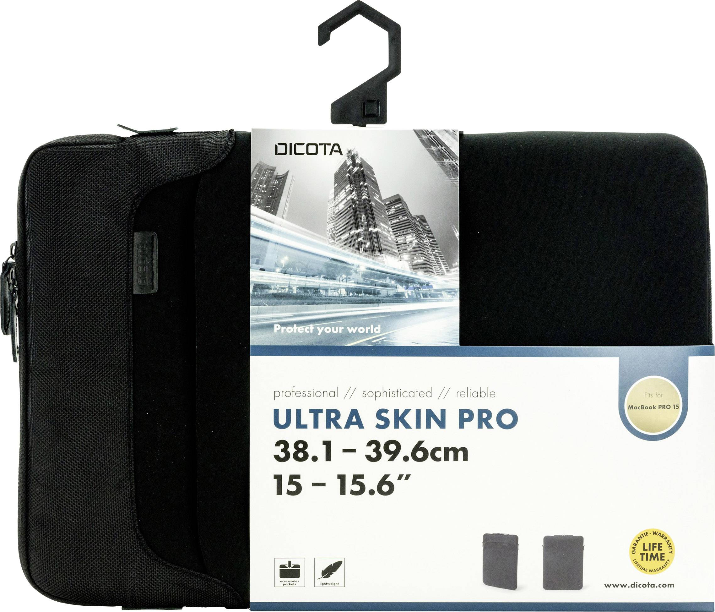 Dicota Ultra Skin PRO. Art der Tasche: Notebook-Hülle, Maximaler Bildschirmdurchmesser: 39,6 cm (15.6 Zoll). Gewicht: 300 g. Oberflächen-Farbe: Einfarbig, Produktfarbe: Schwarz