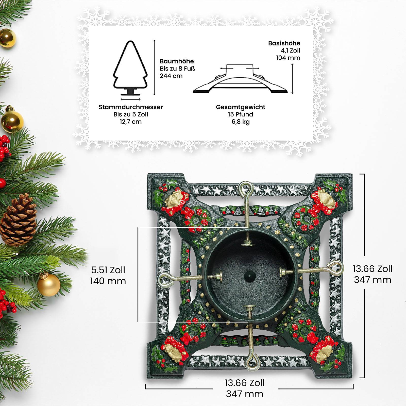 • Langlebiges Material. Der Baumständer ist aus haltbarem Gusseisen gefertigt und verfügt über eine hohe Stabilität und Festigkeit.