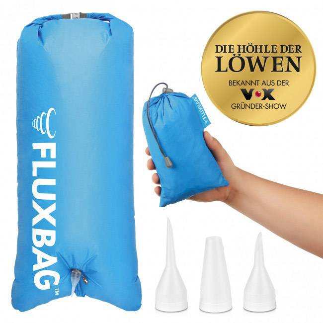 "Fluxen" statt aufblasen! So müssen Sie nicht mehr auf umständliches Aufpumpen per Hand- und Fußdruckluftpumpe zurückgreifen! Machen Sie jetzt den „FLUXBAG™" zu Ihrem unverzichtbaren Begleiter für Urlaub, Strand und Camping!