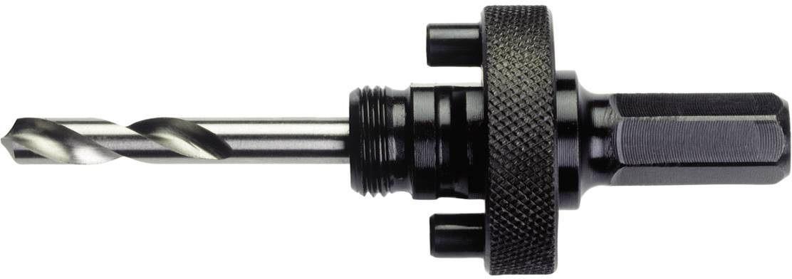 Aufnahmeschaft für Lochsägen von Ø 14-30 mm mit rundem Körper und Dreikant-Schaft. HSS-Zentrierbohrer ist bei allen Aufnahmeschäften enthalten.