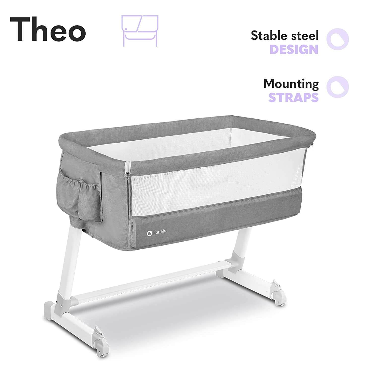 Dank dem Baby Beistellbett Theo von Lionelo können das Baby und die Eltern nahe beieinander schlafen. Dies wiederum ermöglicht es dem Kind, sich sicher zu fühlen und eine starke Bindung zu den Eltern zu entwickeln. Das Bett kann dank der Rollen und den schrägen Füßen direkt neben dem Bett eines Elternteils bewegt werden. Dies kann auch für stillende Mütter von großem Nutzen sein. Aufgrund der Beschaffenheit der Rollen, fährt das Bett jedoch nicht versehentlich weg, sondern nur, wenn es ein Elternteil leicht anhebt. Das Baby Beistellbett Theo kann auf bis zu 5 verschiedene Höhen eingestellt werden und kann sich dadurch an jedes Bett anpassen. Die Füße sowie die Neigung des Beistellbettes können ebenfalls verstellt werden. Die Seite kann durch Reisverschlüsse geöffnet werden und ermöglicht so den direkten Kontakt zwischen Eltern und Kind.