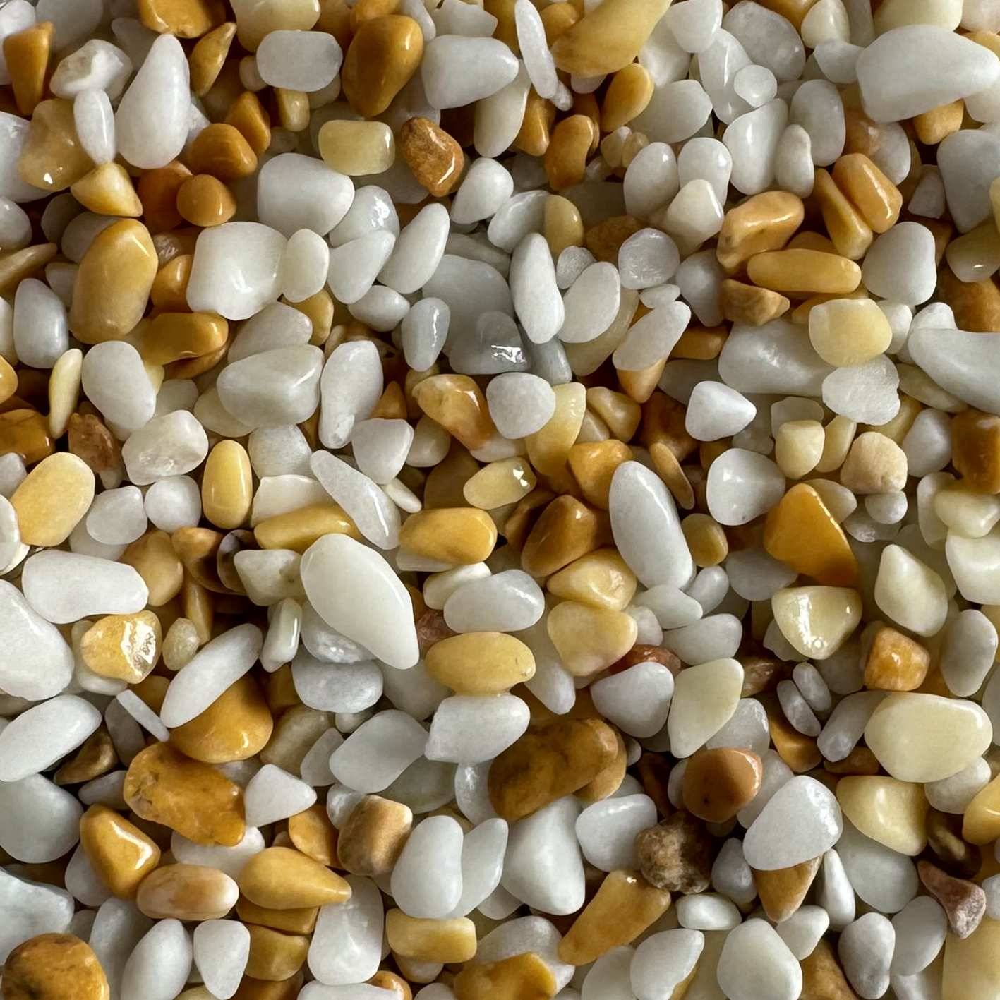 Steinteppich Epoxidharz Set Innen & Außen (ca. 56kg / 2-2,5m²) | 50kg 2-4mm Marmorkies + 6L, 2K Epoxidharz Bindemittel | (Bianco Giallo)