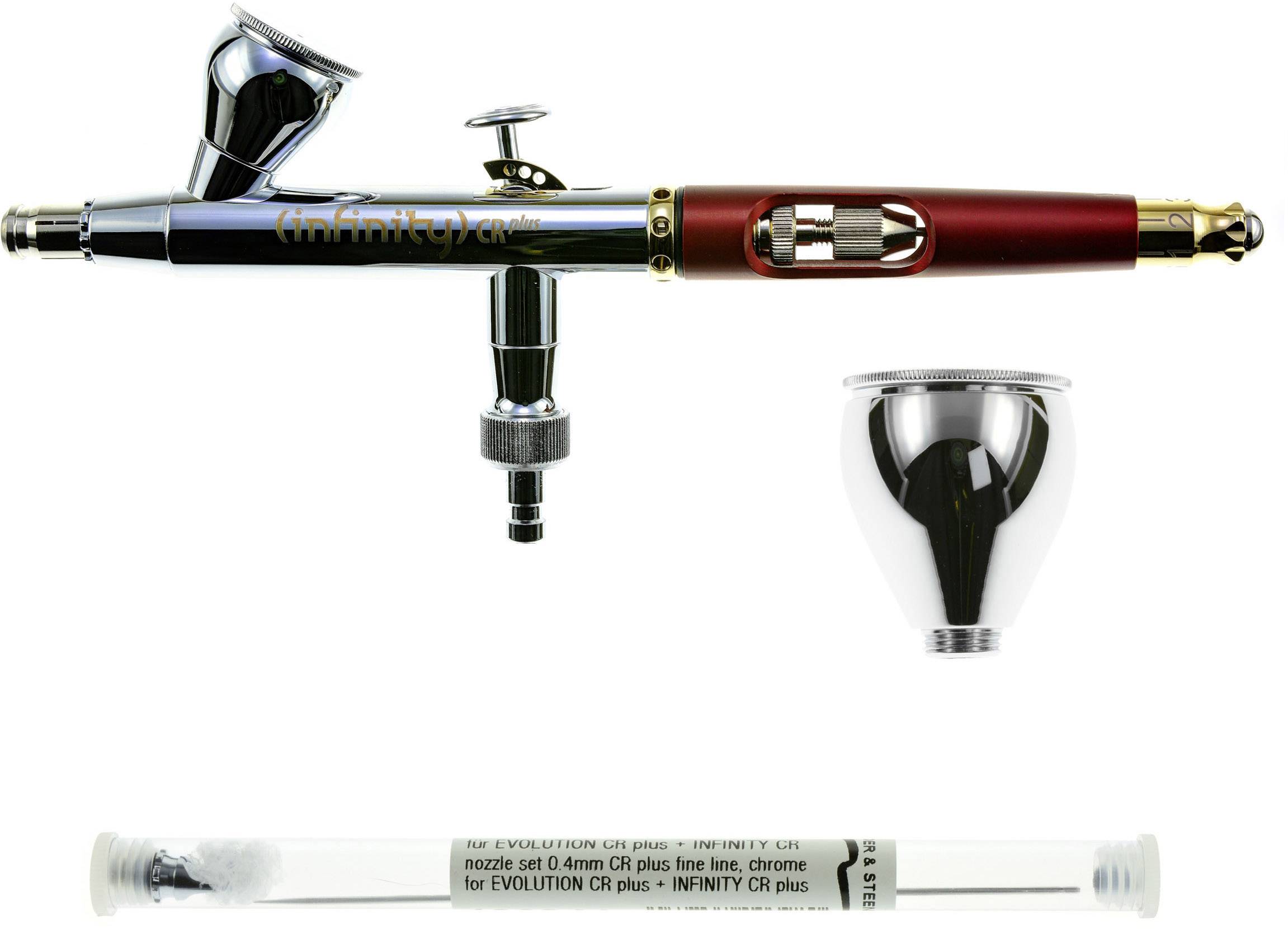 Die Infinity CRplus Two in One #2 unterscheidet sich zur Infinity CRplus 0,2 durch einen zusätzlich mitgelieferten Farbbecher, einer Düse und einer Distance Cap.