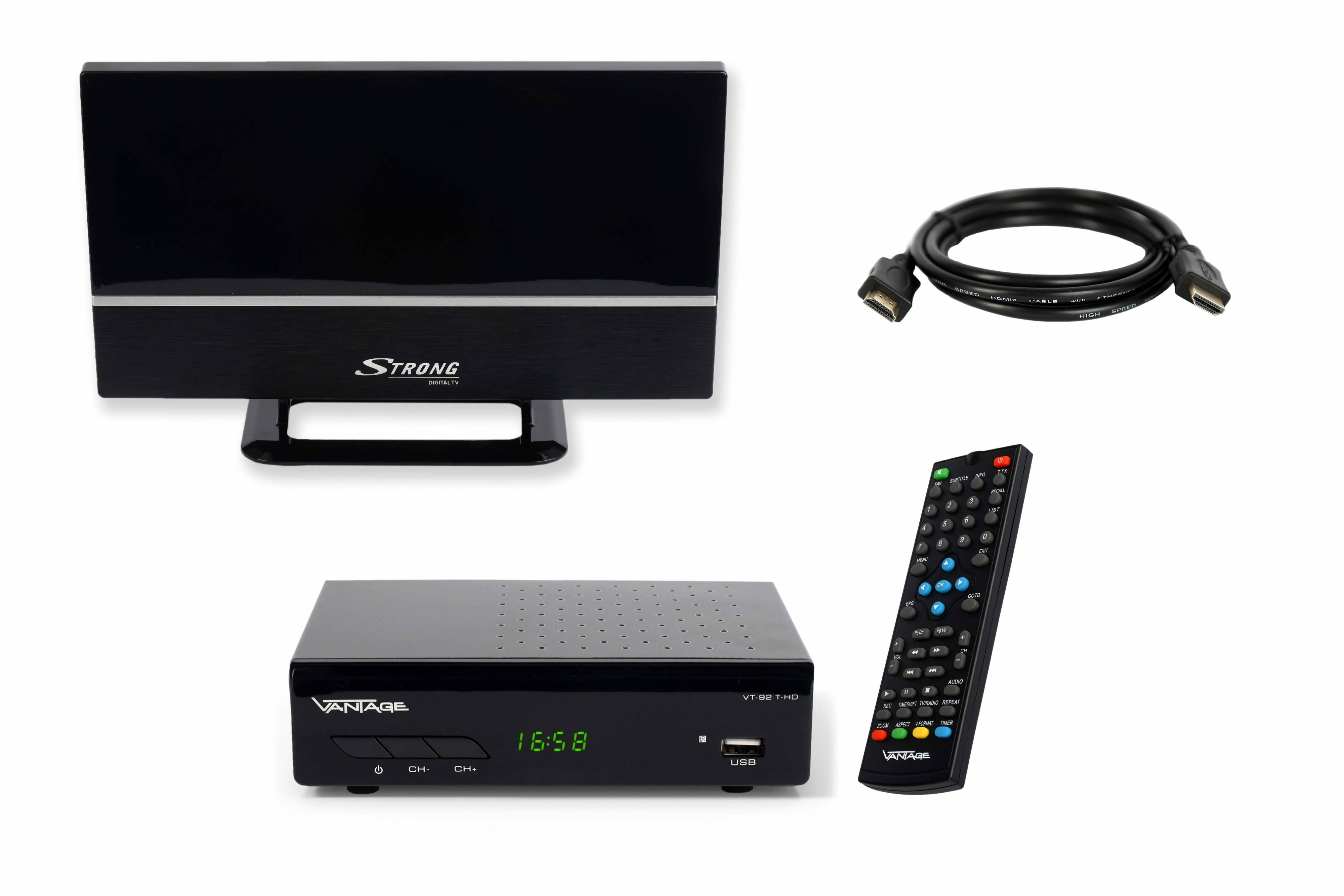 Mit dem Vantage VT-92 T-HD Receiver Bundle von Sky Vision erhalten Sie alles, was Sie für erstklassiges terrestrisches Fernsehen benötigen. Der kleine Vantage VT-92 T-HD ist ein kompakter und benutzerfreundlicher Receiver für TV, der Ihnen ein gestochen scharfes 1080p Full HD-Erlebnis bietet. Dank seines Single Tuners empfangen Sie Ihre Lieblingssender ohne Kompromisse.